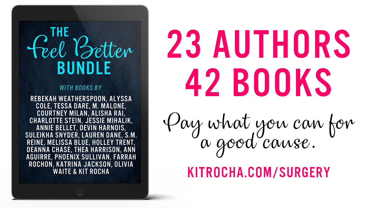 Before we get to the recs this week, though, I wanted to shine a little light on a romance bundle that’s just been released in order to crowdfund some help for a member of Romancelandia. If you’ve been involved in the romance community at all, chances are you’re at least familiar with the name Kit Rocha (and if you’re not, allow me to direct you to the amazing Beyond series, erotic stories set in a post-apocalyptic society that will bowl you over in the absolute best of ways). But Kit Rocha is actually the pseudonym for co-writing partners Bree and Donna, both of whom are lovely humans and wonderful representatives of Romancelandia on social media. Recently, Donna received some rough health news and will have to undergo emergency surgery before the end of the year — so in order to help defray the costs, 23 romance authors pitched in with a ridiculously awesome number of e-books in support. It’s a pay-what-you-can collection, but honestly, the titles you get in this bundle are MORE than worth it — and it’s all for a good cause! So check out the Feel Better Bundle (seriously, this is such an awesome thing) and consider supporting one of our own. Any additional money raised will be paid forward to various Romancelandia community members in need, to local food banks, and used to buy books for Title I schools in underserved communities via Donor's Choose.